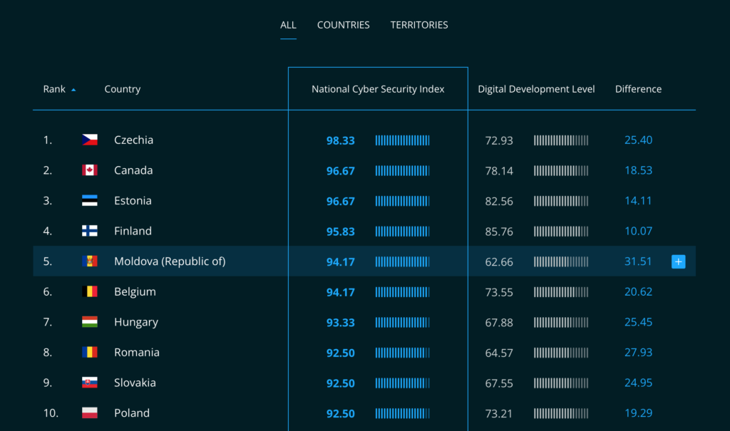 Topul evaluează capacitatea statelor de a preveni, detecta și gestiona incidente cibernetice, pe baza cadrului legal, a instituțiilor funcționale și a mecanismelor operaționale. Poziția Moldovei indică un nivel ridicat de pregătire instituțională și o abordare coerentă a securității digitale.