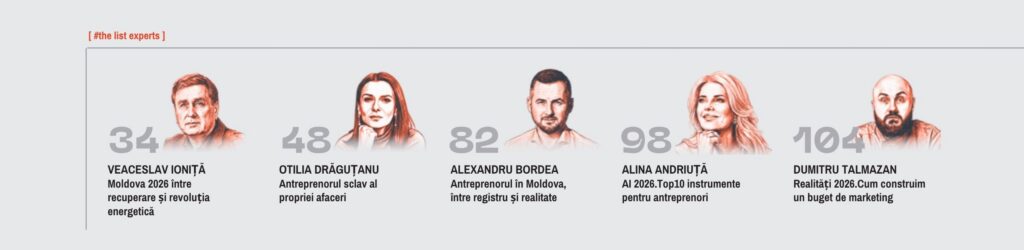 Revista intră și în partea de marketing și construcție de brand. Dumitru Talmazan vorbește despre cum construiești un buget de marketing în 2026. Alina Andriuță explică instrumente AI utile pentru antreprenori.