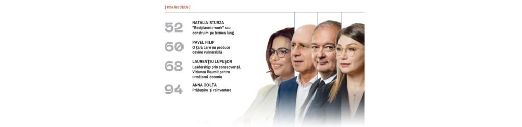 Tot în paginile revistei îi găsești și pe Veaceslav Ioniță, Otilia Draguțanu și Alexandru Bordea, care analizează cum se mișcă economia, unde apar riscuri și ce decizii devin importante în perioada următoare.